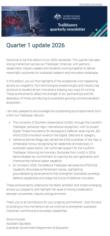 The newsletter provides the latest updates on the Trailblazer Universities Program.