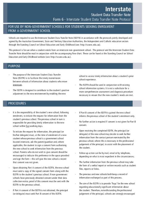 Form 6 – Protocol for use by non-government schools for students transferring from government schools